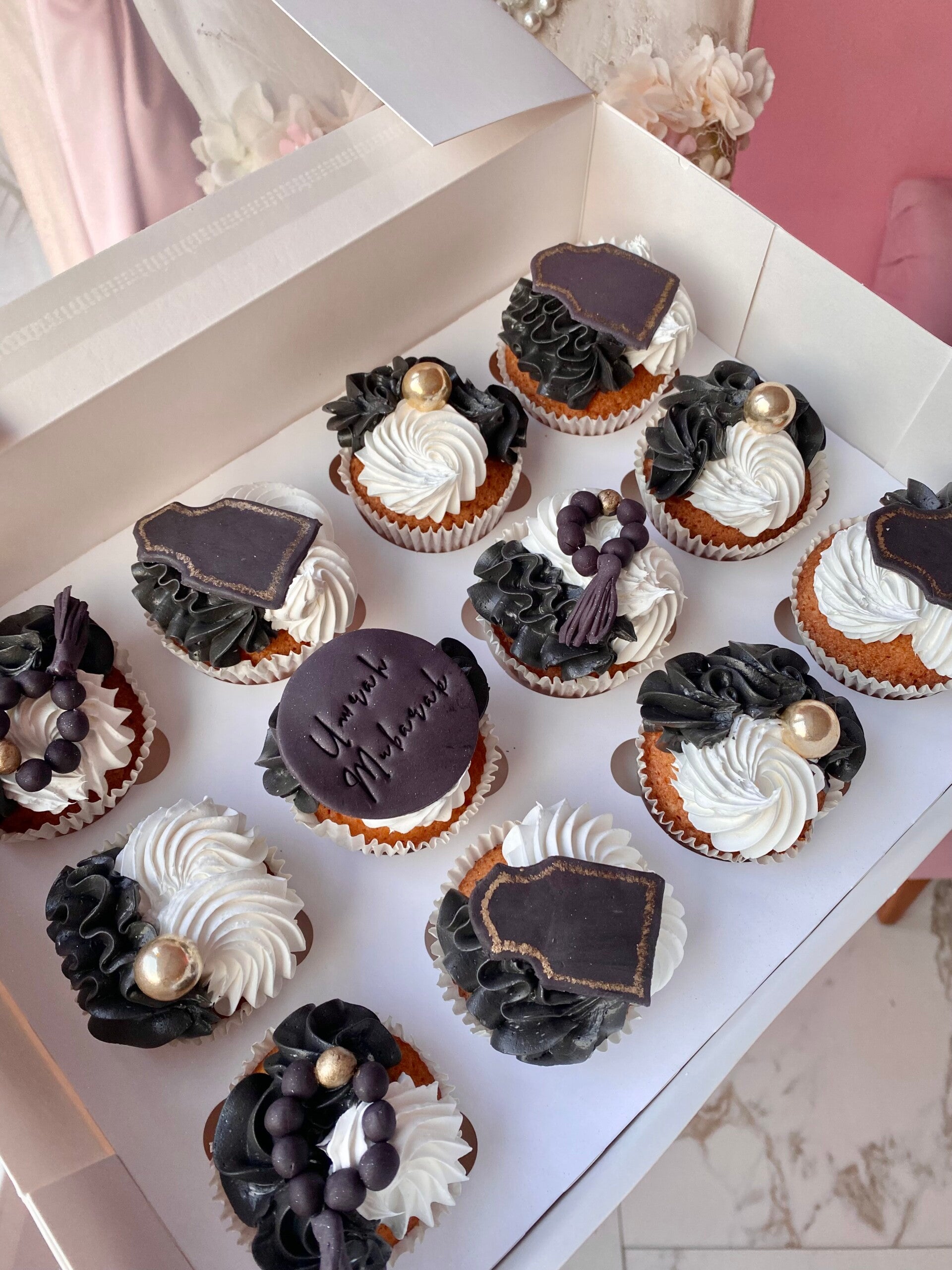 Onze themacupcakes worden volledig versierd volgens het door u gekozen thema. Dit kan met fondant (suikerpasta) voor een ambachtelijke afwerking, of met eetbare prints voor een strak en gepersonaliseerd resultaat.